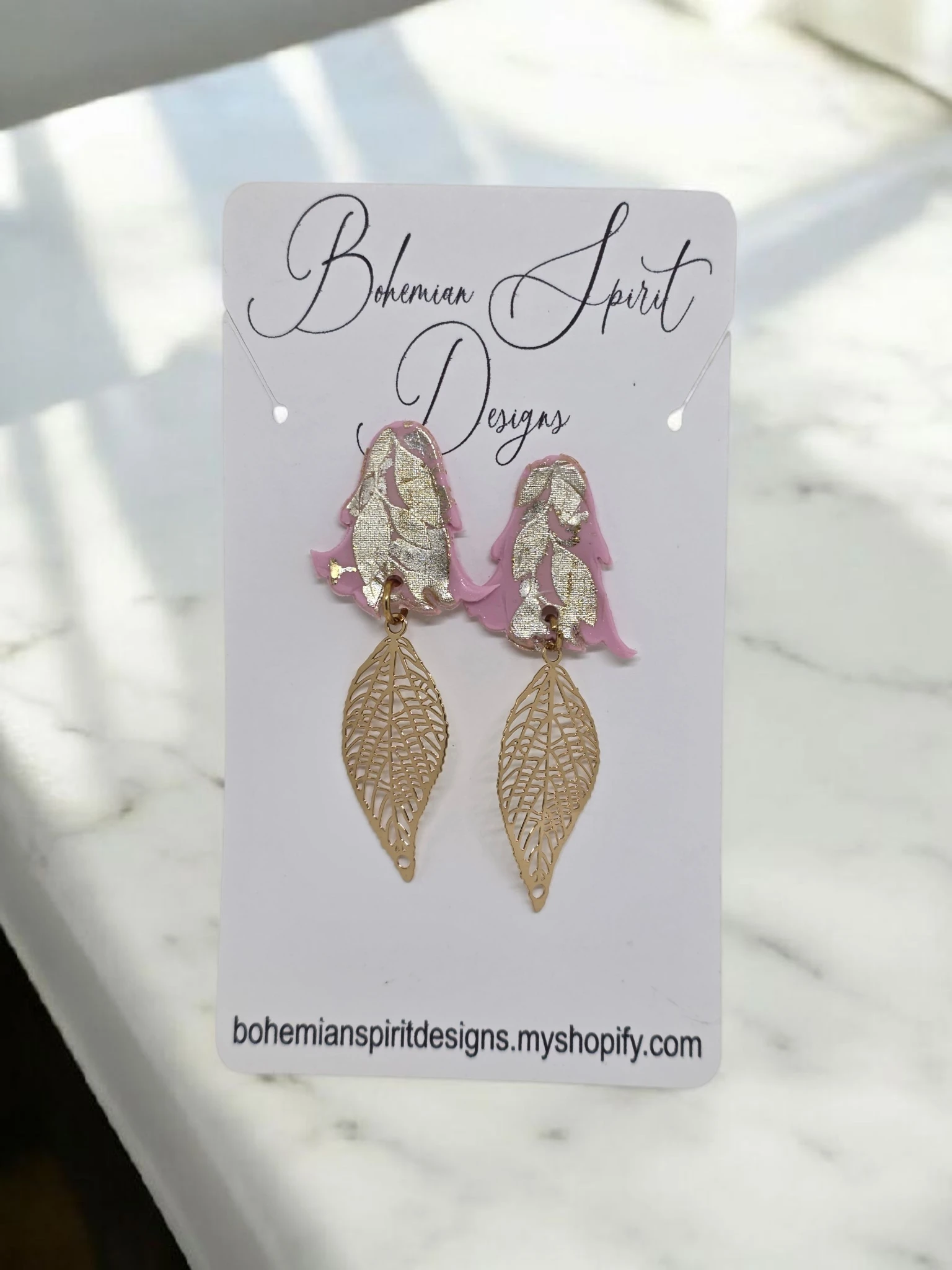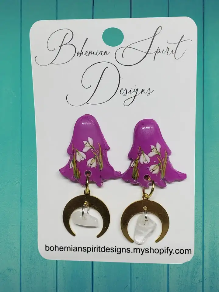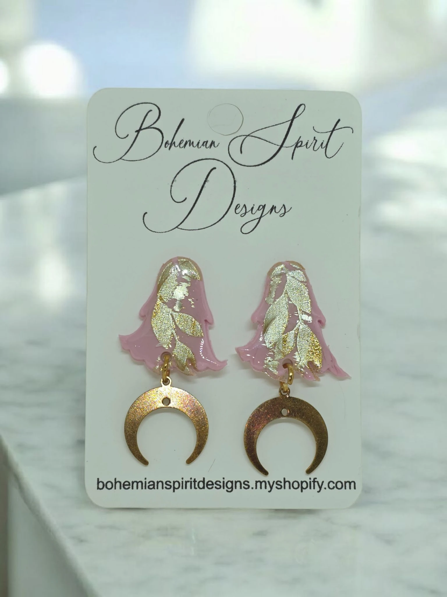 Pink and Gold Moon Ghosts Earrings