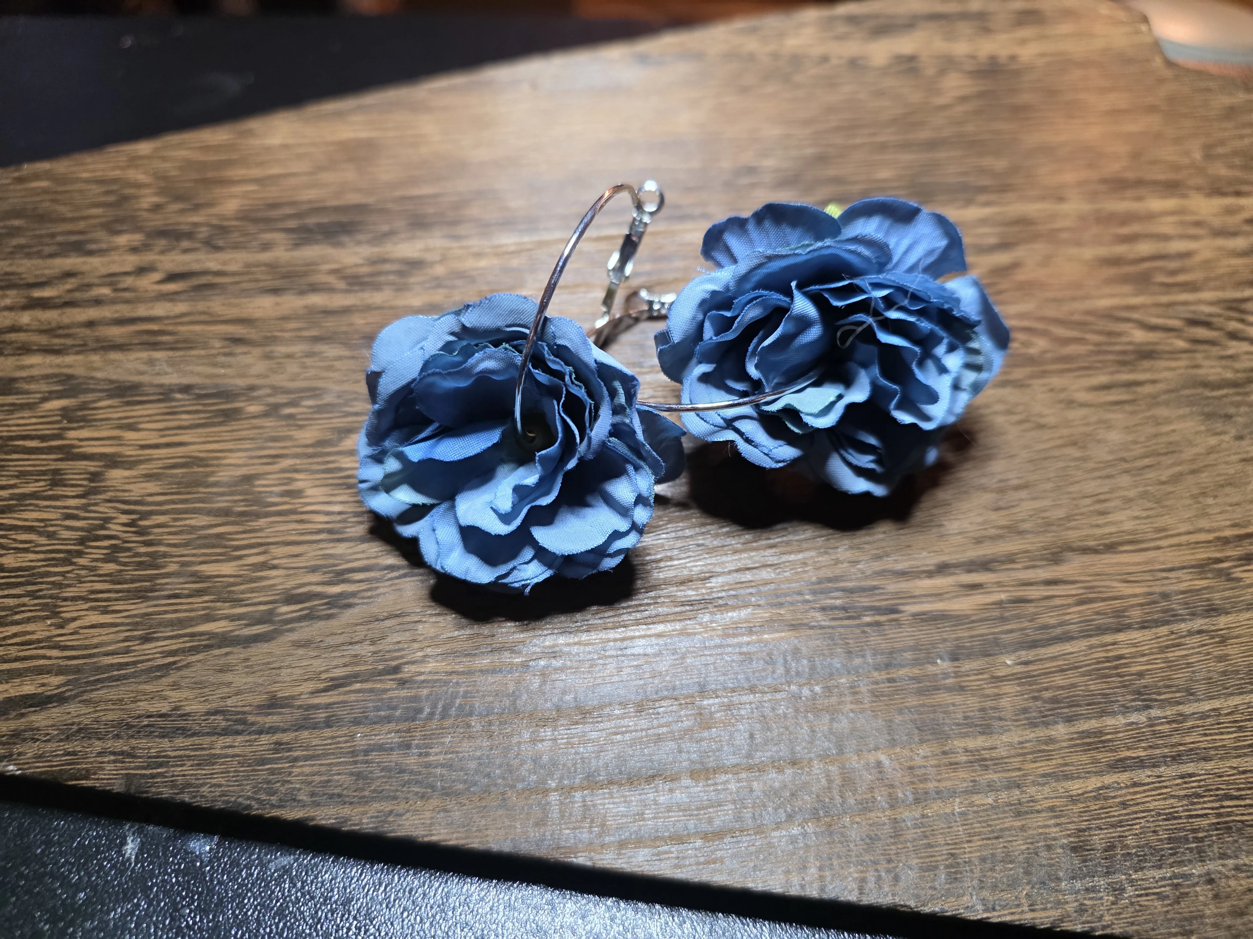 Blue Floral Silver Hoops