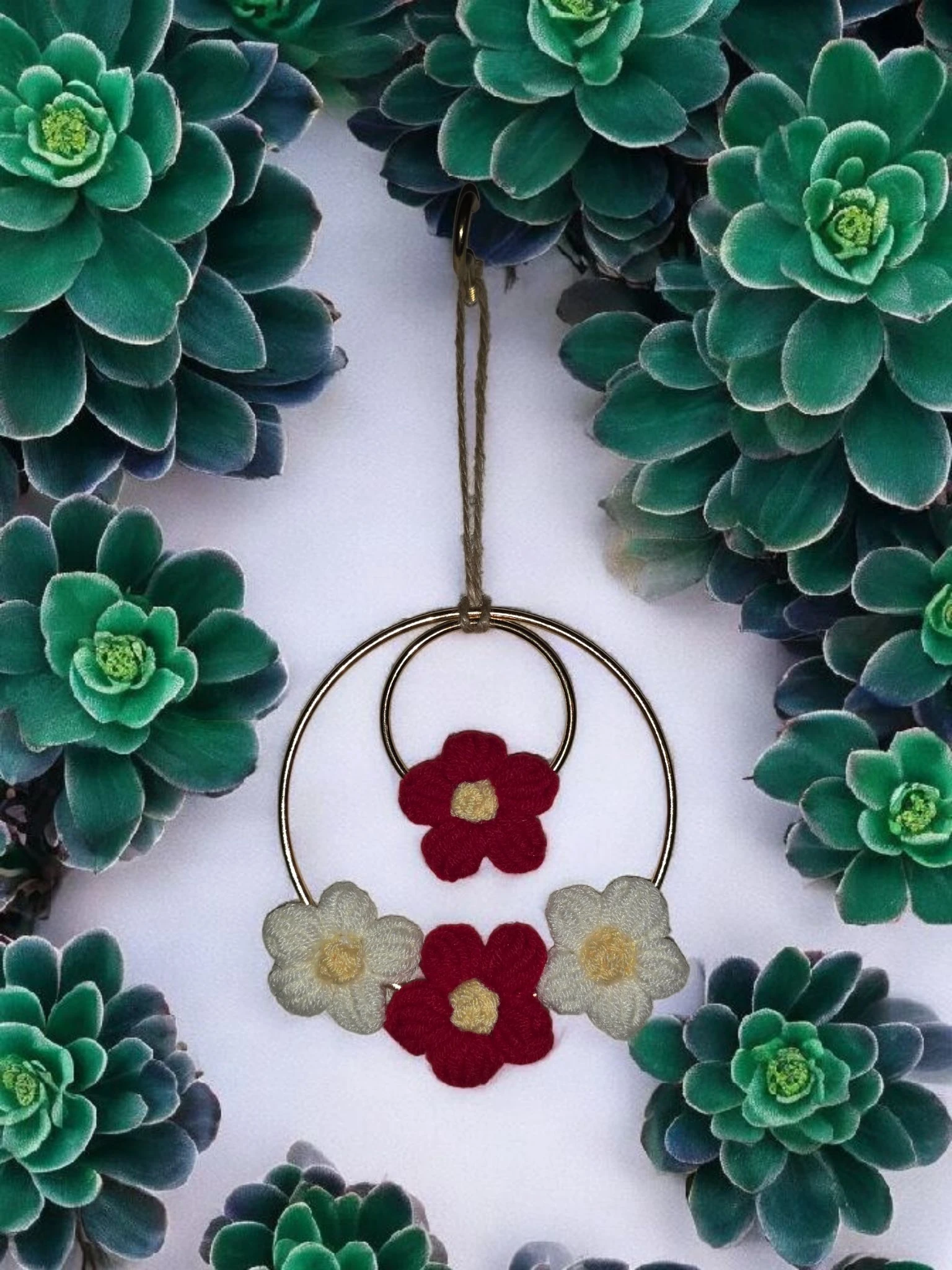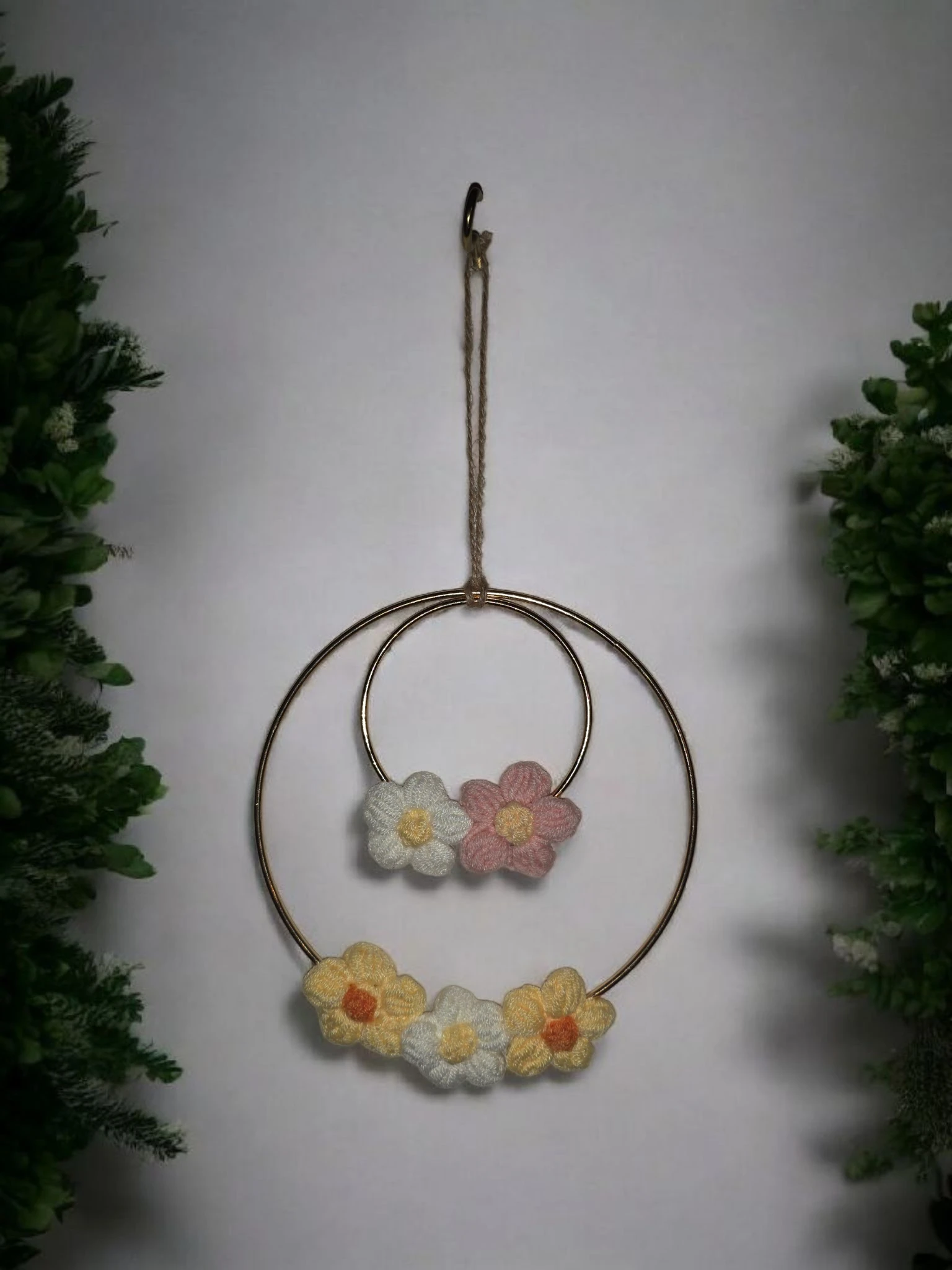 Hand-Crocheted Flowers And Hoop Wall Decor