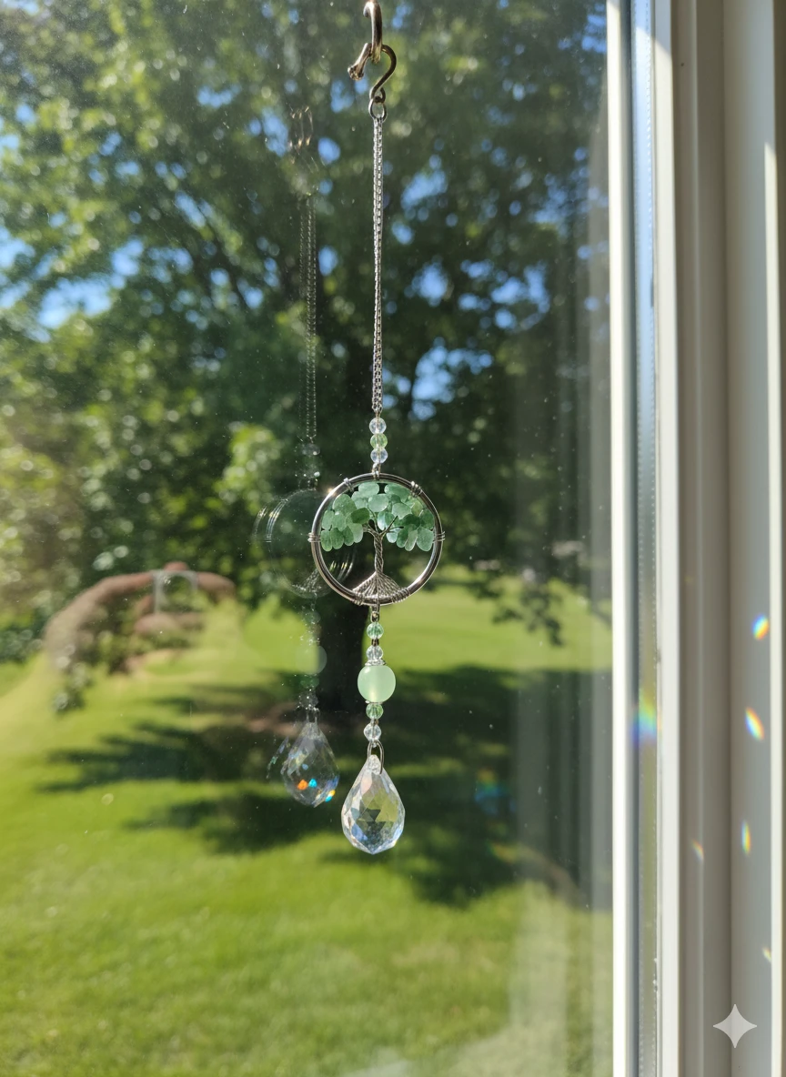 Green aventurine Tree Of Life Suncatcher