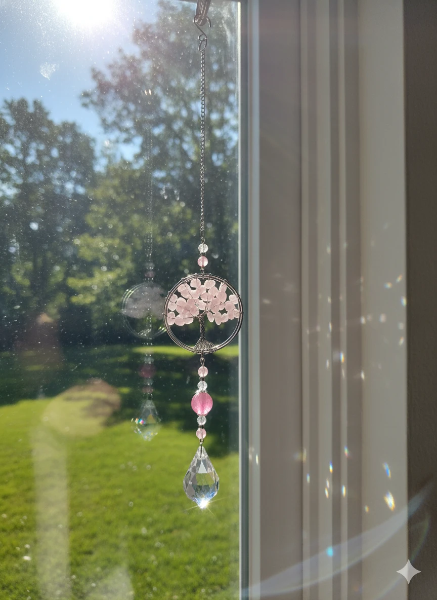 Rose Quartz Tree Of Life Suncatcher