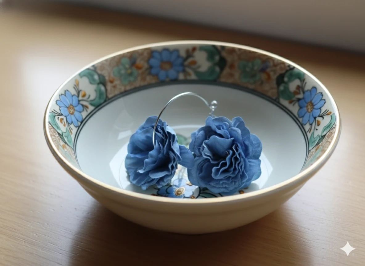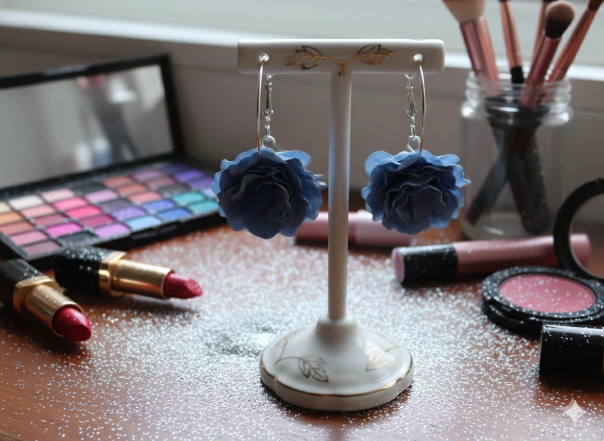A beautiful fusion of classic and feminine style! These elegant Silver Hoops are transformed by lovely blue flowers. The combination of sleek silver and delicate florals makes these earrings a unique and eye-catching accessory for any occasion.
